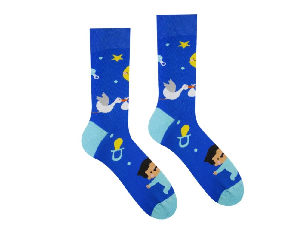 Fiúcska vidám zoknik különkiadása az értékes pillanatokhoz. Ez örömet szerez a színes zoknik szerelmeseinek, valamint az "új" szülőknek. Ideális ajándék a szülők számára csecsemő világra hozatalához, vagy éppen a változatosabb ruhatár felfrissítéséhez.