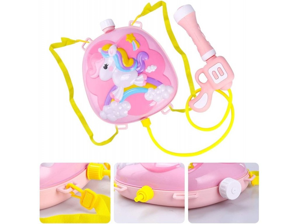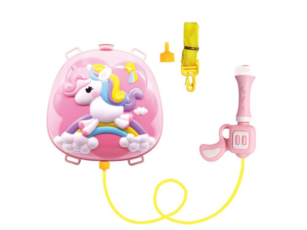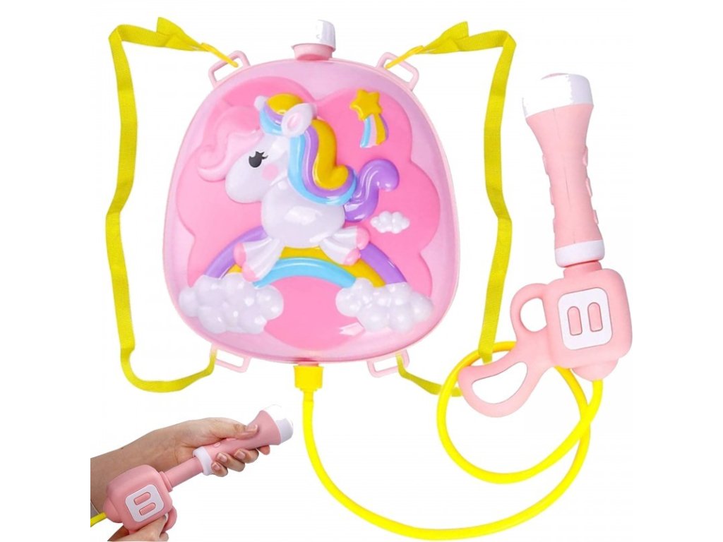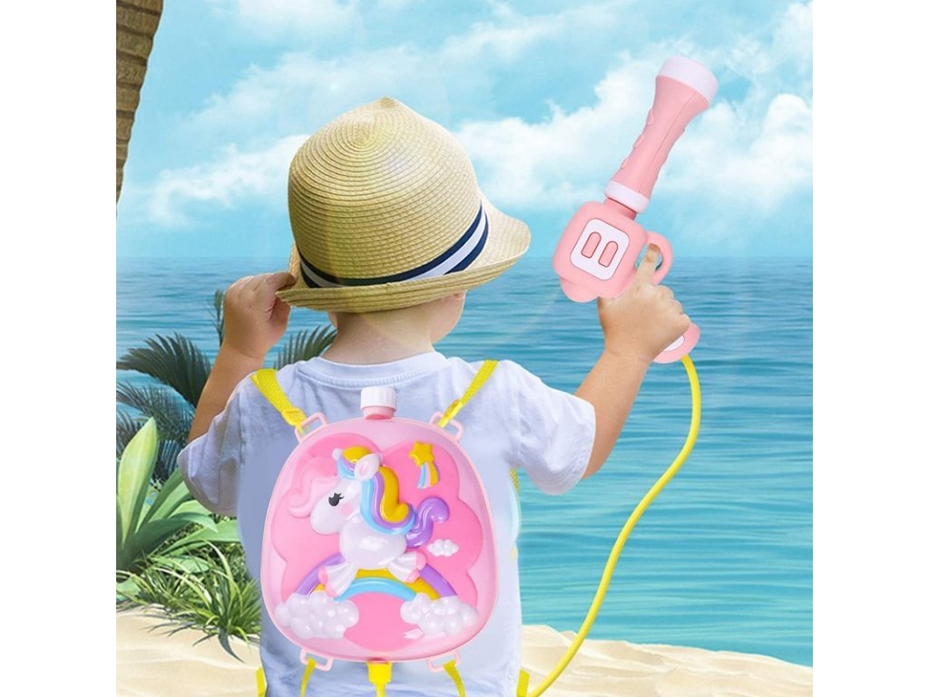 Szerelje fel magát egy vízipisztollyal egy rózsaszín unikornis hátizsákkal, és érezze jól magát az udvarán egy vízi csata közben. A pisztoly a forró nyári napokon is hasznos, és remek szórakozást nyújt gyerekeknek és szülőknek.