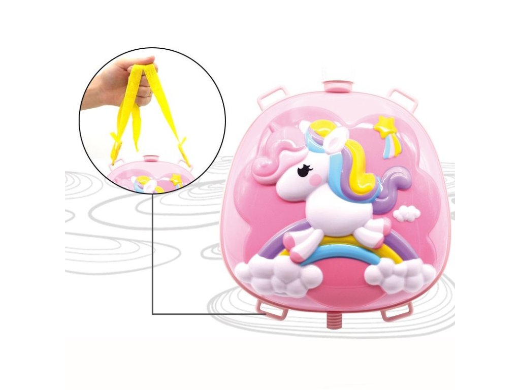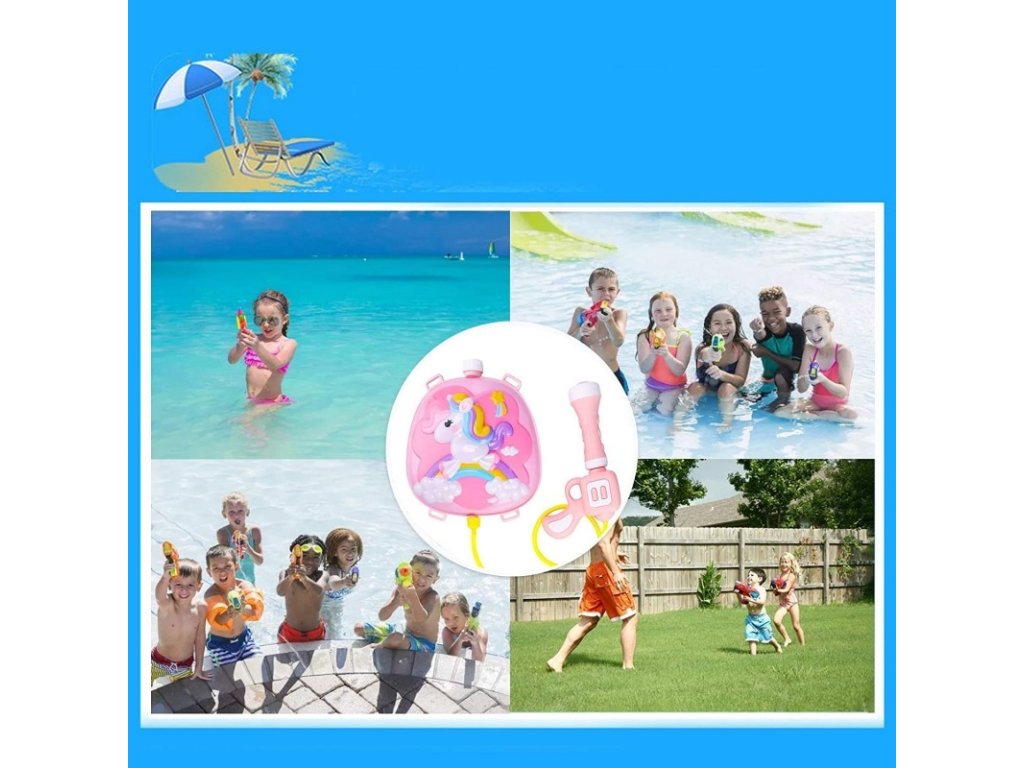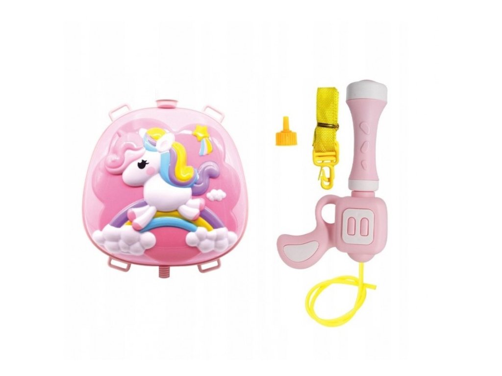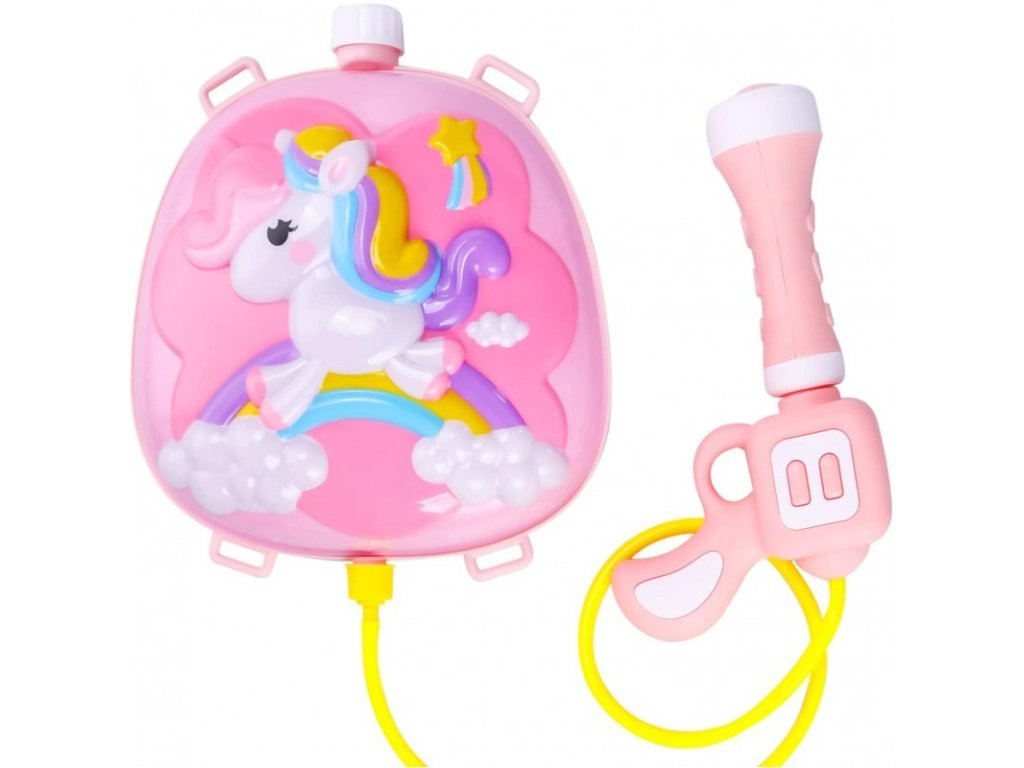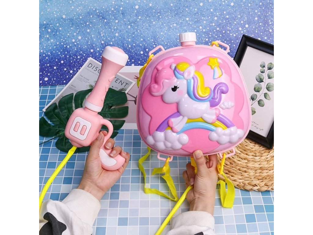 Szerelje fel magát egy vízipisztollyal egy rózsaszín unikornis hátizsákkal, és érezze jól magát az udvarán egy vízi csata közben. A pisztoly a forró nyári napokon is hasznos, és remek szórakozást nyújt gyerekeknek és szülőknek.